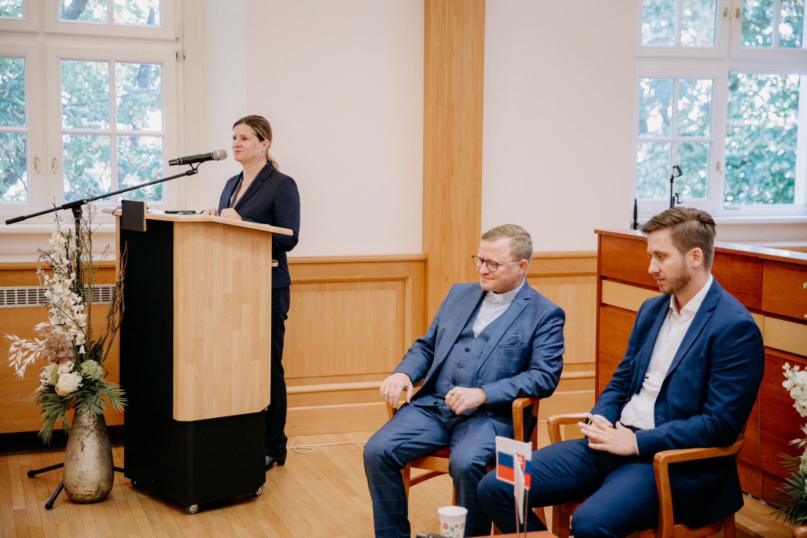 Účastníkov privítali prof. Miloš Lichner, rektor Trnavskej univerzity, a doc. Dana Masaryková, prorektorka pre vonkajšie vzťahy a spoluprácu, spolu so zástupcom Ministerstva školstva, výskumu, vývoja a mládeže Slovenskej republiky, JUDr. Marcel Vysocký, PhD.