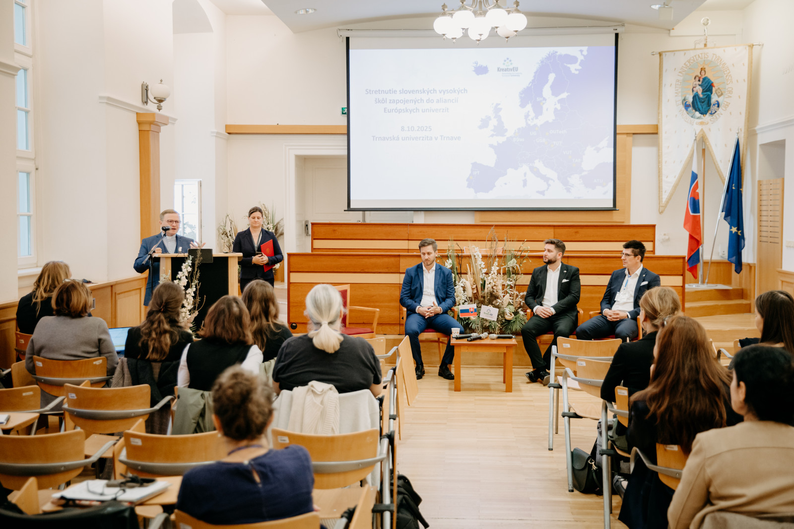Dňa 8. októbra 2025 sa na pôde Trnavskej univerzity v Trnave konalo významné stretnutie slovenských vysokých škôl zapojených do aliancií Európskych univerzít. Podujatie vytvorilo priestor na výmenu skúseností, prezentáciu úspešných projektov a diskusiu o ďalších krokoch v rámci spolupráce na európskej úrovni.